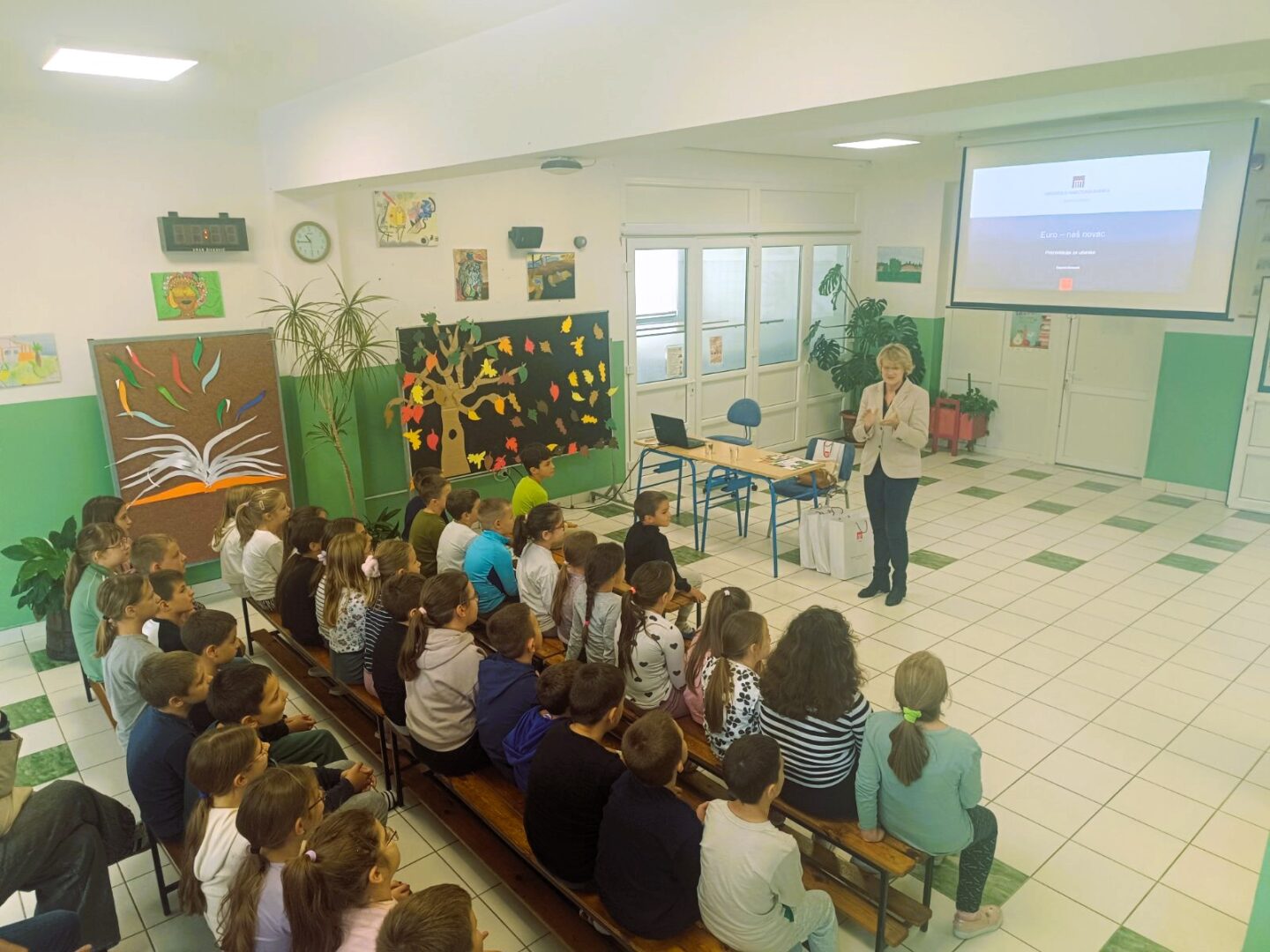 Tema susreta bila je „Euro, naš novac“, a djeca su na zanimljiv i razumljiv način upoznala kako nastaje novac, koja je uloga središnje banke, što znači inflacija te zašto je važno štedjeti.
