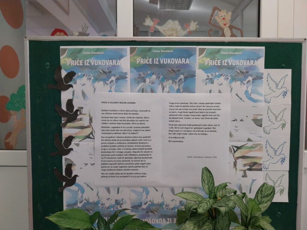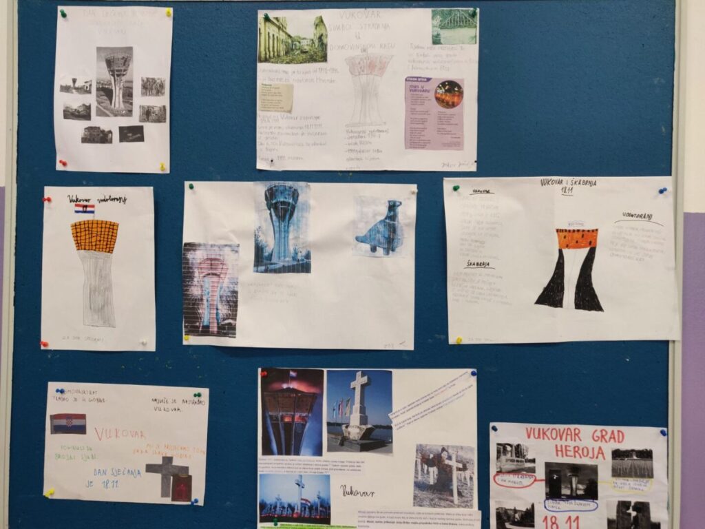 Učenici prvoga razreda poslušali su priču Siniše Glavasevic “Priča za roditelje” te nakon toga slikali vodotoranj. Učenici drugog razreda su na aluminijskoj foliji tupom olovkom iscrtavali vodotoranj te kasnije iscrtavali tušem. Učenici trećeg razreda oblikovali su vodotoranj niskim reljefom na alufoliji. Učenici četvrtog razreda izrađivali su plakate. Na satu hrvatskoga jezika šesti je razred obrađivao tekst Milana Pauna Zajedno u ratu, zajedno u vječnosti