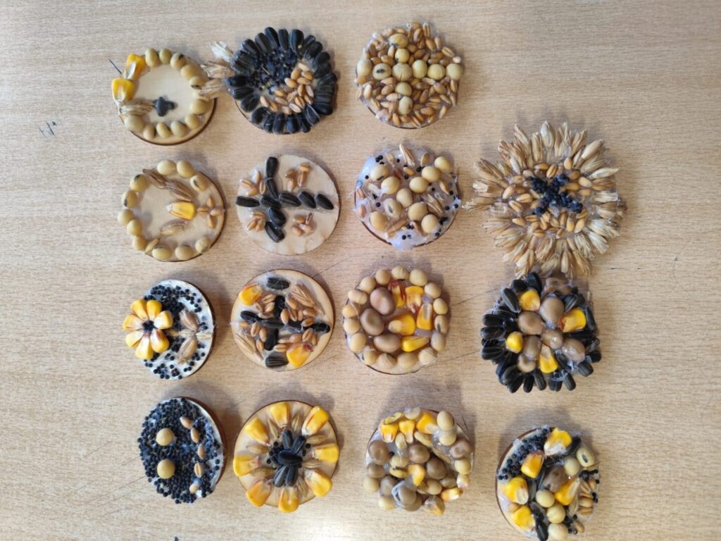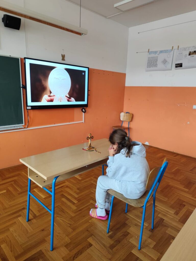 Našu radionicu započeli smo molitvom i razgovorom o kruhu i hrani koja nam je potrebna za život, ali i o onima kojima je ta hrana tako daleka i nedostupna. Onima koji su gladni, napušteni, siromašni… O djeci Venezule, Tanzanije i Ugande. Svakako najljepši dio radionice bio je razgovor s Onim koji hrani našu dušu, Onim koji je živi kruh, Kruh Života. Naš Isus. U kreativnom dijelu radionice izrađivali smo broševe od malih komadića drveta i sjemenki kukuruza, suncokreta, soje, pšenice… Dirnute slikama, videima i tužnim životnim pričama gladne, siromašne i napuštene djece Venezuele, Tanzanije i Ugande ove male misionarke velikoga srca odlučile su posjetiti i razveseliti stare, usamljene i bolesne u svome selu. Poklonile su im broševe, peciva i kolače, ali učinile su one puno više od toga. Poklonile su im sebe, svoje vrijeme. Donoseći im radost, donijele su im Isusa.